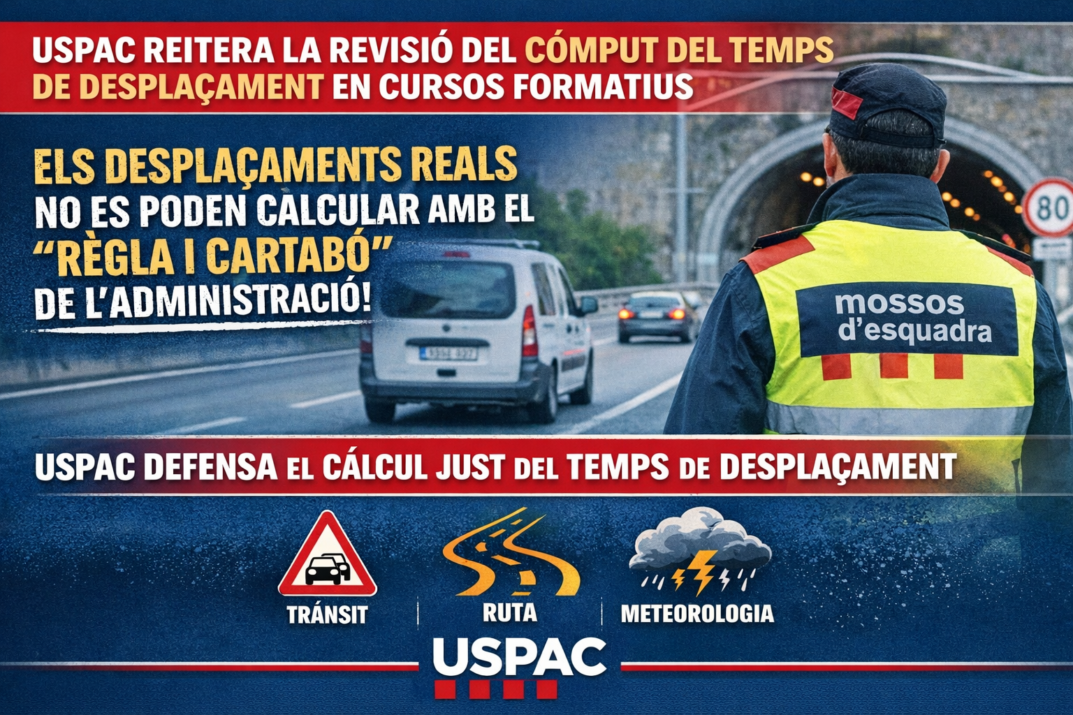 USPAC ha registrat un nou escrit davant la Subdirecció General de Recursos Humans reiterant la petició formulada el passat 22 de maig de 2025 relativa al criteri de còmput del quilometratge i del temps de desplaçament en els cursos i activitats formatives del cos.
